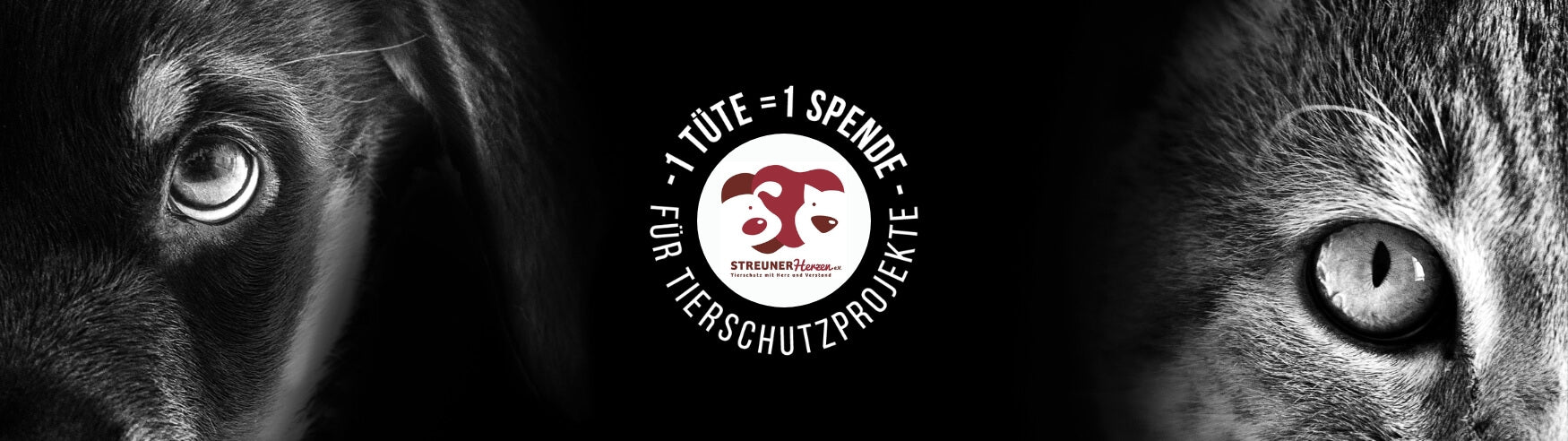 Bei Tales&Tails geht deshalb von jedem verkauften Produkt immer eine Spende an Tierschutzprojekte. So konnten wir zusammen mit dir in den letzten Jahren schon vielen Tieren in Not helfen. Zusätzlich kannst du mit dem Kauf unserer direkten Spendenprodukte den Tierschutz noch weiter unterstützen. Kaufst du zum Beispiel einen vollen Napf zu deiner Leckerli- oder Futterbestellung dazu, dann geht diese Spende direkt und 1 zu 1 an Streunerherzen - zusätzlich zu der Spende pro verkaufter Tüte.