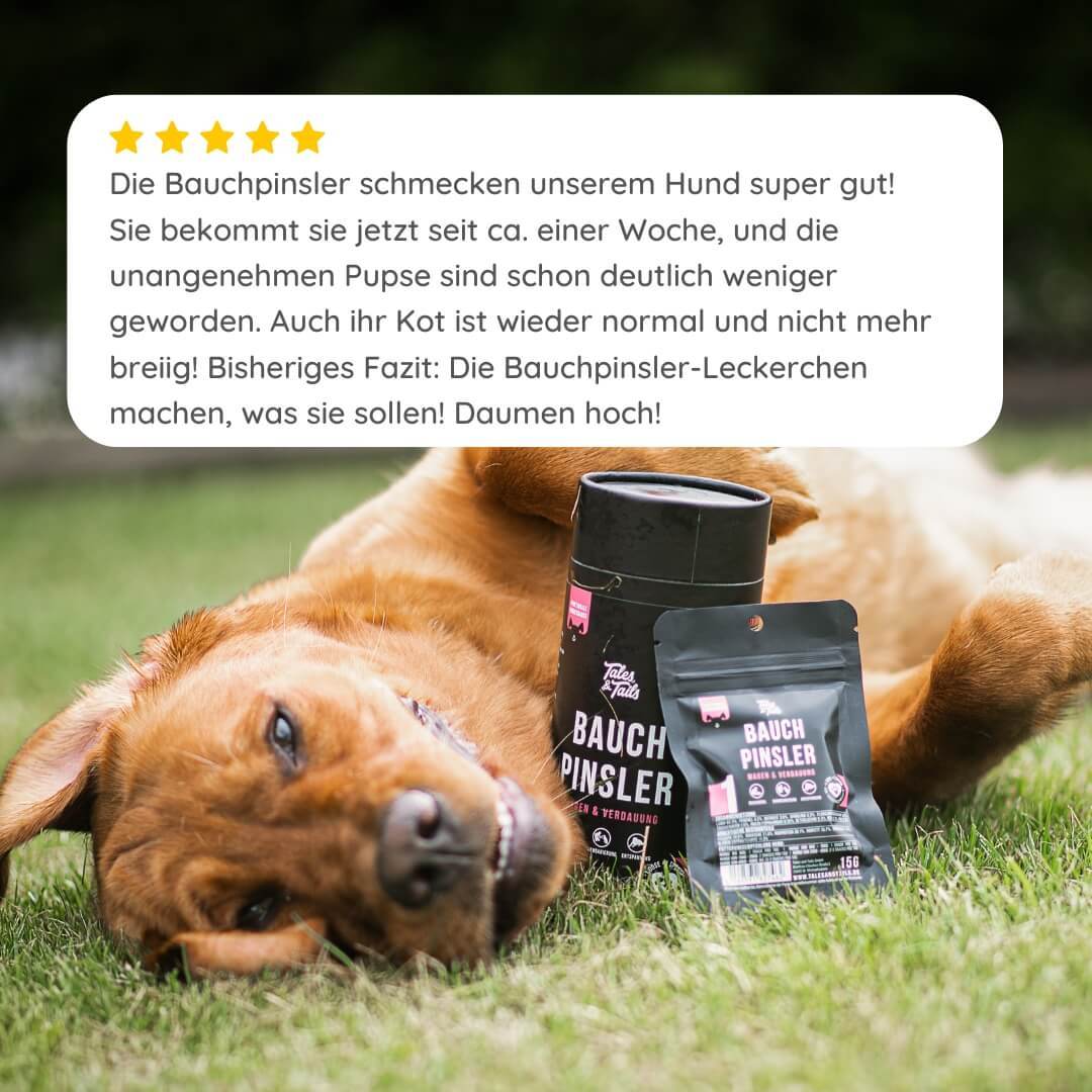 Blähungen sind nicht pupsegal, denn sie deuten auf eine gestörte Verdauung hin. Höchste Zeit daher, der Verdauung deines Hundes etwas unter die Arme zu greifen! Mit dem Bauchpinsler lassen sich Blähungen ganz einfach in den Griff bekommen - besser für deine Nase und besser für das Wohlbefinden deines Hundes.