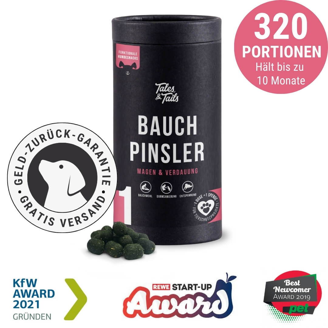 Die revolutionäre Zusammensetzung verzichtet, anders als viele ähnliche Produkte, auf Inhaltsstoffe wie Hühner- und Geflügelfett, Reismehl, Getreide oder Soja. Somit ist Bauchpinsler auch für besonders sensible Hunde geeignet - und schafft nicht selbst die Probleme, gegen die seine pflanzlichen Inhaltsstoffe wirken. Damit kann dein Hund sich rundum wohl und gesund fühlen.