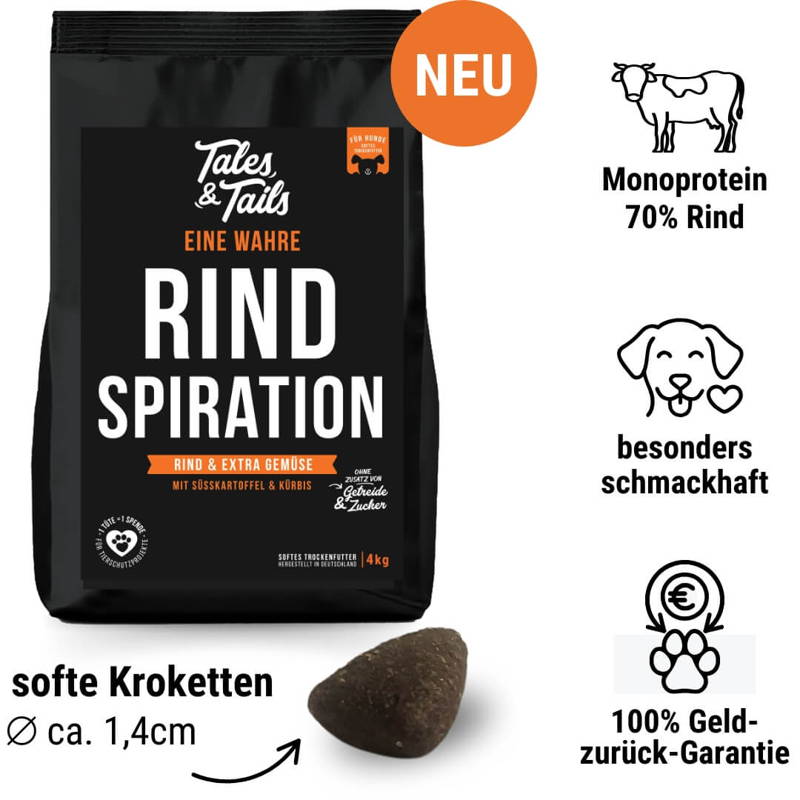 Perfekt für Hunde mit Unverträglichkeiten geeignet: Monoprotein - Rind als einzige tierische Proteinquelle