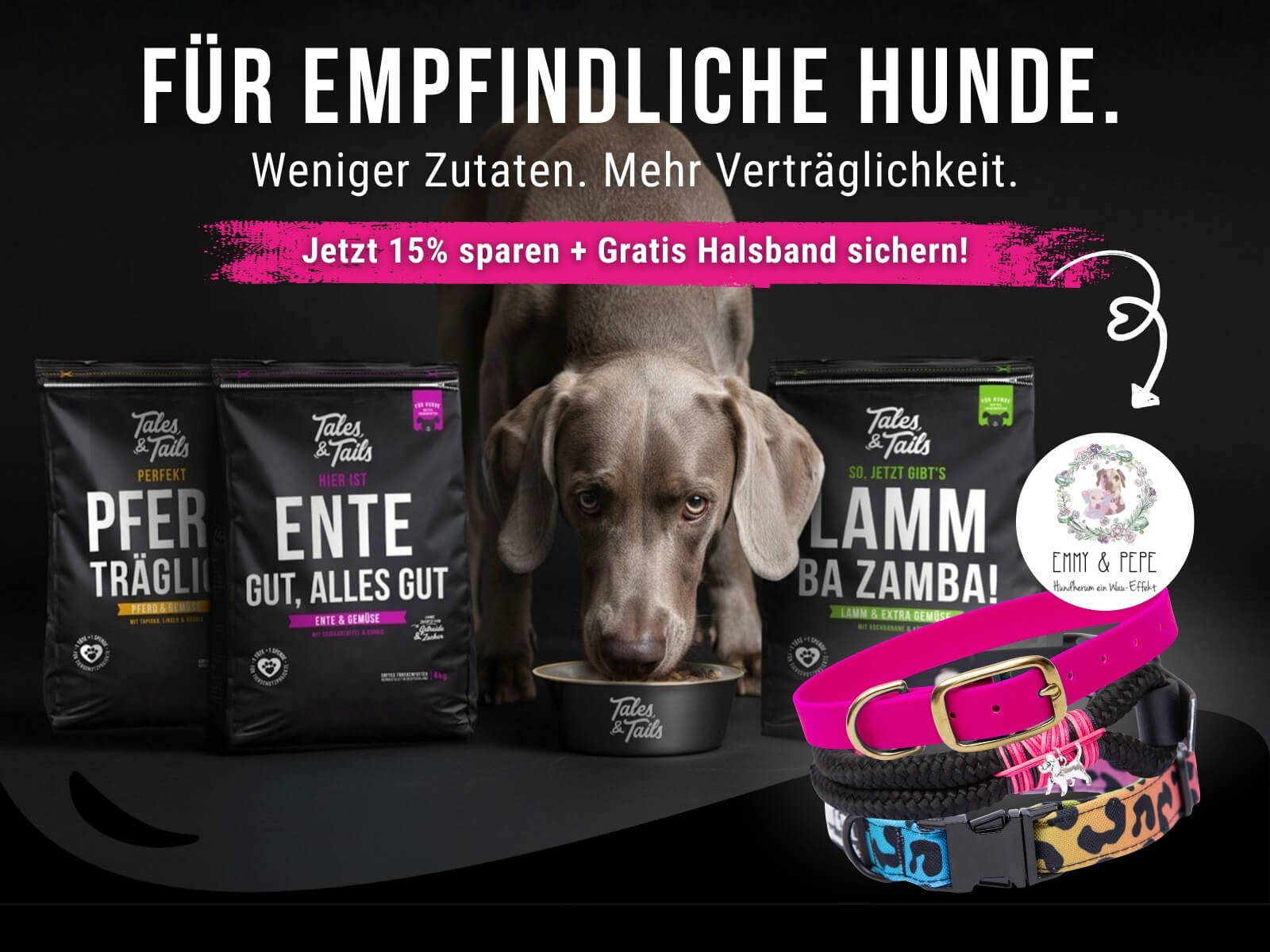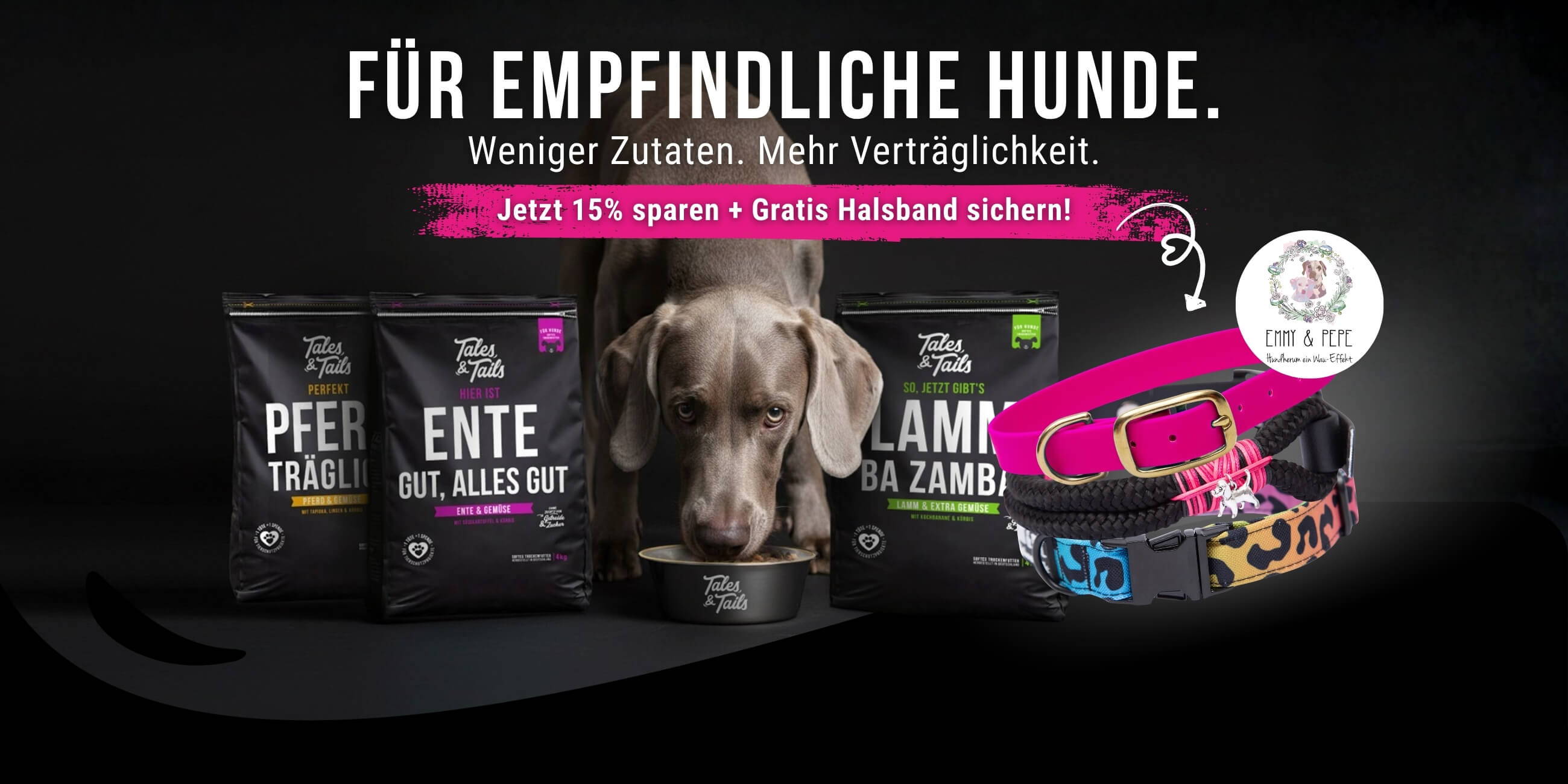 Gutscheincode für ein kostenloses Halsband mit deiner zweiten Lieferung erhalten & Lieblingshalsband bei Emmy & Pepe auswählen