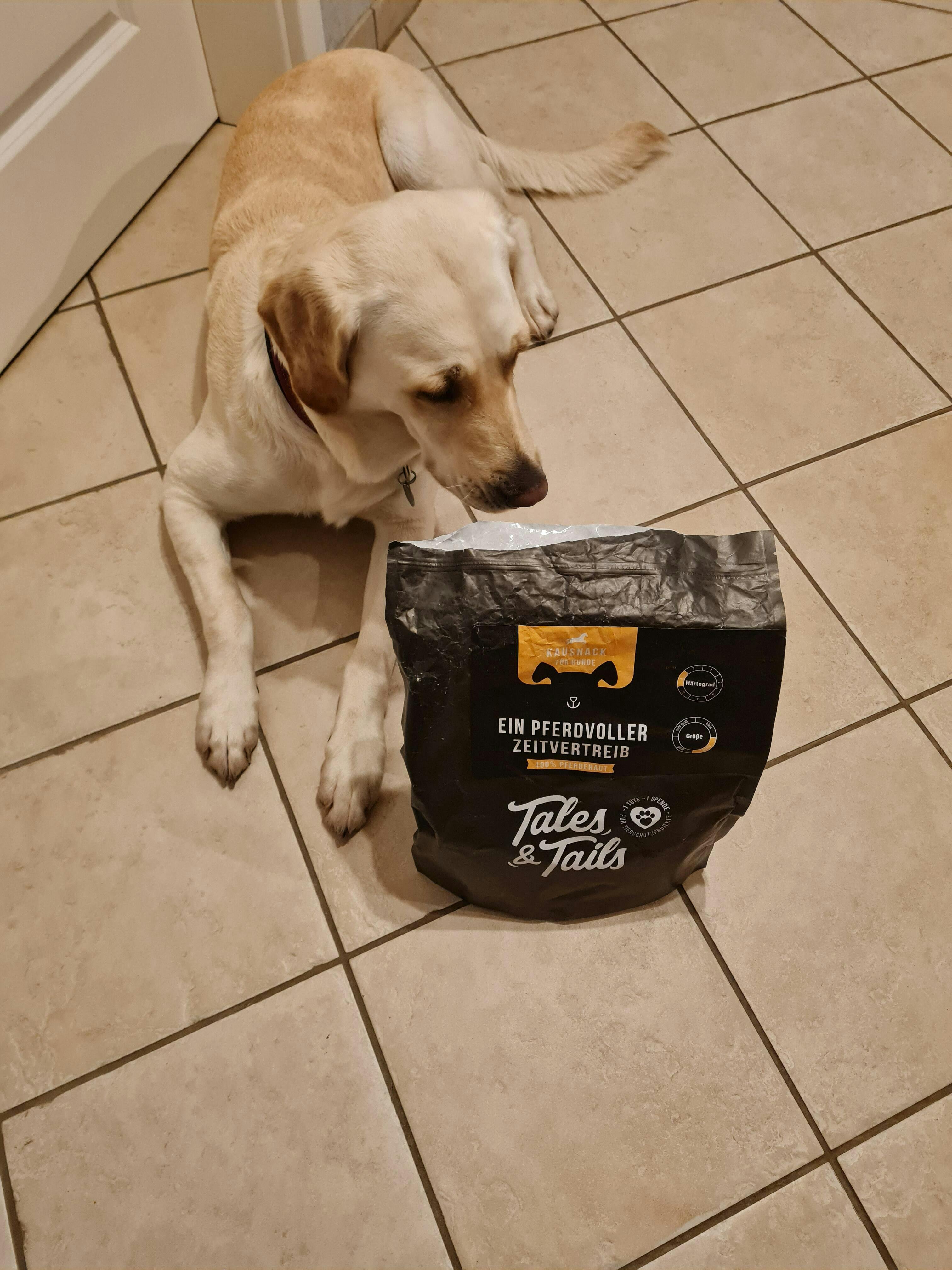 Mit einem Abo bei Tales & Tails kannst du dir in frei wählbaren Intervallen dein Hundefutter direkt vor die Haustür liefern lassen, zum Beispiel unser Trockenfutter.