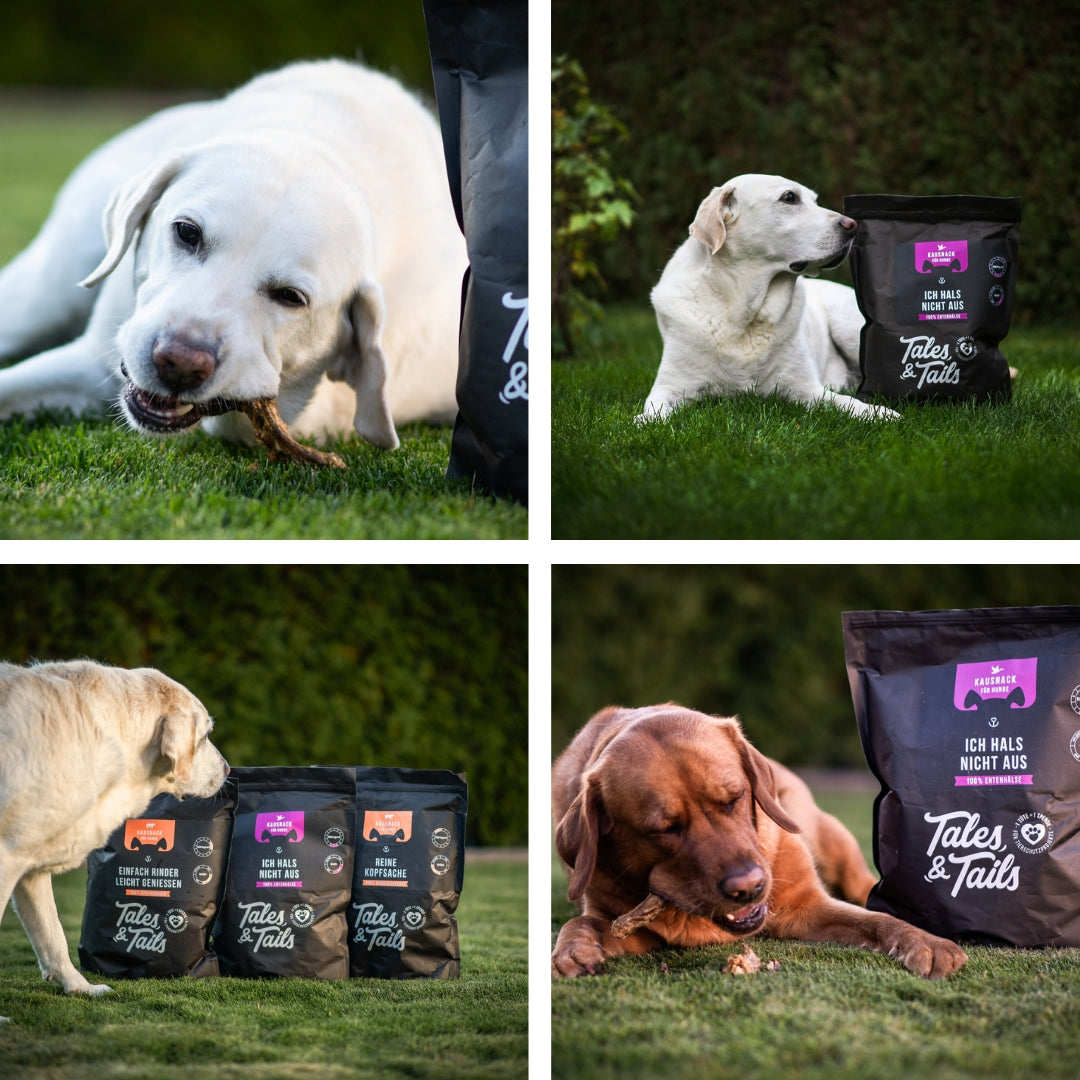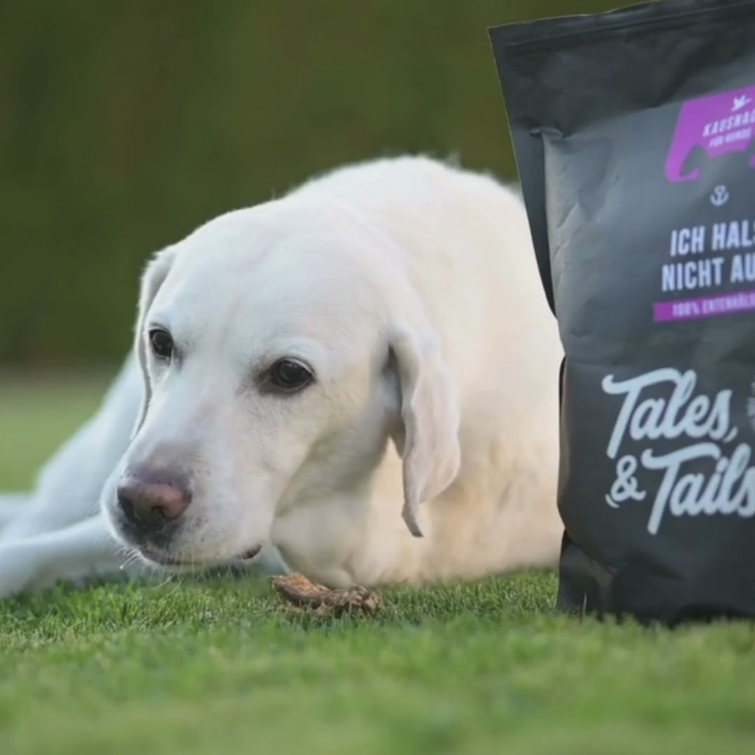 Mit einem Abo bei Tales & Tails kannst du dir in frei wählbaren Intervallen dein Hundefutter direkt vor die Haustür liefern lassen, zum Beispiel unser Trockenfutter.