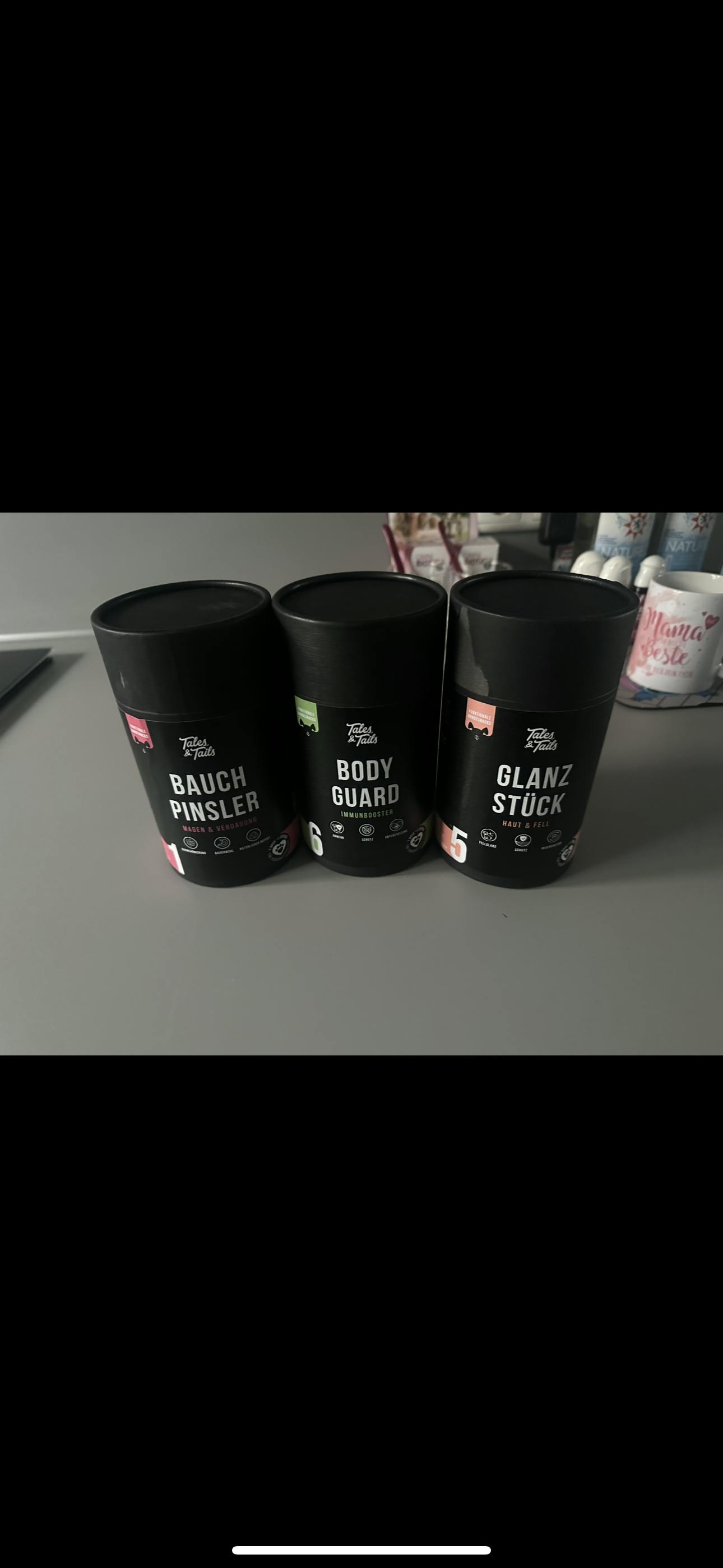 Choco liebt die Glanzstücke ⭐️ er wartet morgens nach seinem Spaziergang sehnsüchtig auf seine insgesamt 6 leckerchen ⭐️ (Wir füttern noch jeweils 2 andere Snacks: Bodyguard Bauchpinsler) 6 Snacks am Tag mit gutem Gewissen 🫶 Und Yorkis sind sehr wählerisch, aber eure Produkte wurden hier alle sofort angenommen :) Durchfall gibt es seit 2 Jahren auch nicht mehr… Pfoten lecken ist auch Geschichte …. Wir füttern die Snacks nun seit mehr als Wochen und man sieht einen deutlichen Unterschied 🫶Danke, für euren Einsatz 🙏 es ist so schwer gutes Hundefutter zu finden….