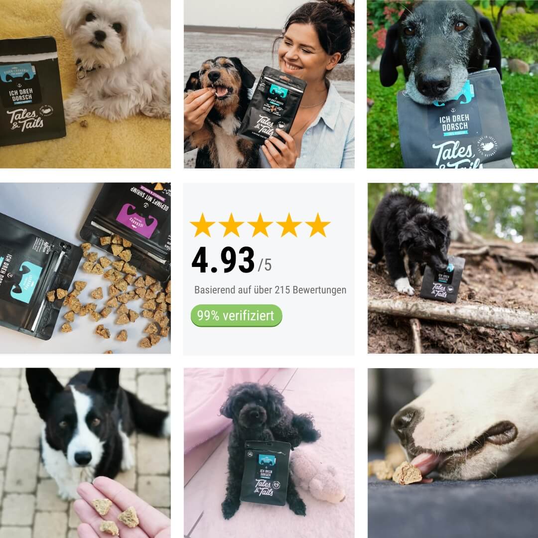 Mit einem Abo bei Tales & Tails kannst du dir in frei wählbaren Intervallen dein Hundefutter direkt vor die Haustür liefern lassen, zum Beispiel unser Trockenfutter.