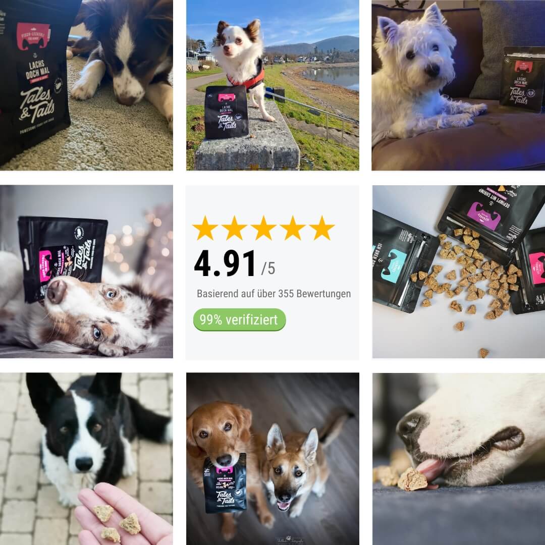 Ob zum Training, beim Tricksen und Spielen oder einfach mal so für zwischendurch – die kleinen Hundeleckerlis ohne Getreide zergehen deinem Vierbeiner einfach auf der Zunge. Warum du ausgerechnet die Lachs-Leckerlis für Hunde von Tales & Tails zu Hause haben solltest? Das wollen wir dir verraten.