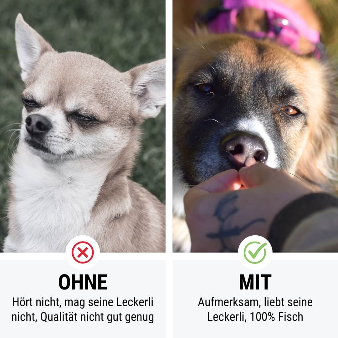 beim Üben. - Nur Fisch als Proteinquelle: 100% Fisch - perfekt für Allergiker und Hunde mit Unverträglichkeiten geeignet