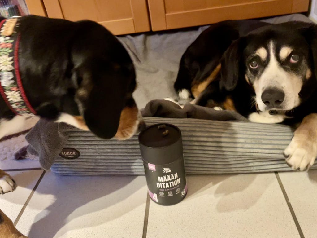 Oder ist dein Hund beim Tierarzt nervös, hat Angst vor Feuerwerk oder kommt beim Autofahren nicht zur Ruhe? Mit Määähditation gibst du ihm den perfekten kleinen Leckerbissen, der ihn in stressigen Situationen beruhigt. Der Snack auf Basis von Lamm und die kraftvolle Mischung aus Baldrian, Melisse und Johanniskraut sorgt dafür, dass dein Hund cool und entspannt bleibt, selbst wenn es mal hektisch wird. Egal ob allein zu Hause, unterwegs oder bei lauten Geräuschen – mit diesen Leckerli wird jeder Moment für deinen Vierbeiner zur puren Entspannung.