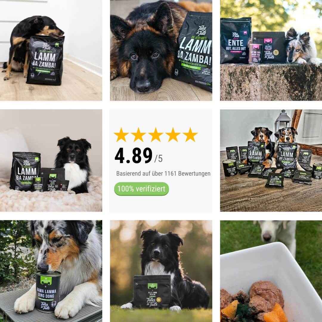 Wuff, hier ist Lenni. Seit über einem Jahr gibt mir mein Herrchen das Trockenfutter Lamm von Tales & Tails und es schmeckt mir wufftastisch! Früher hatte ich immer Probleme und mir hat das Futter meistens auch nicht geschmeckt. Aber das hier ist wirklich pawsome! Leider gibt mein Herrchen mir immer "so wenig" davon (er sagt, das ist die Tagesration).