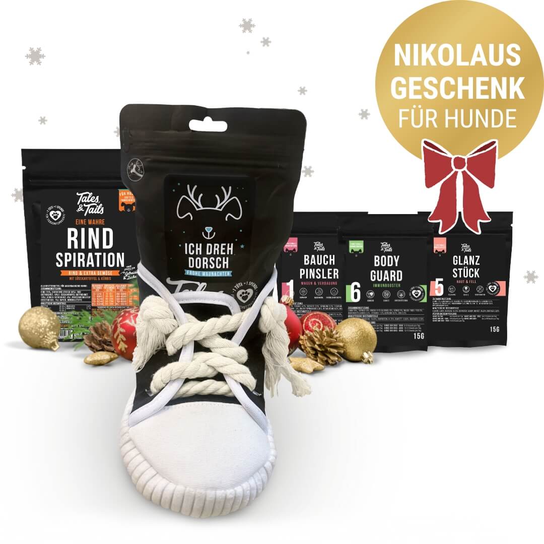 - Nikolaus-Stiefel für Hunde: Befüll den Sneaker mit Snacks & Leckerlis – so freut sich auch dein Hund auf den Nikolaustag.