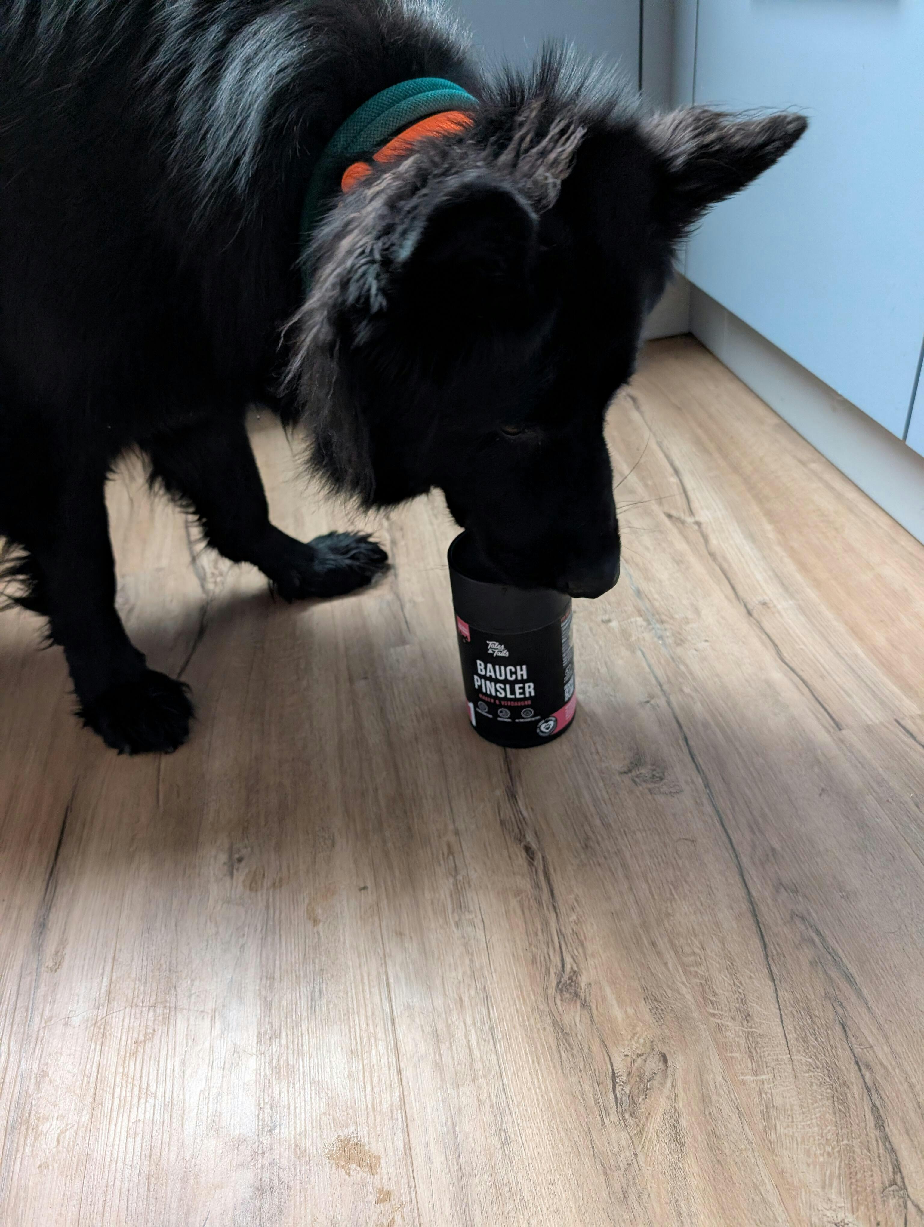 Wir geben unsere Lotte jetzt seit einer Woche den Bauchpinsler als Zusatz, da sie in letzter Zeit vermehrt schmatzt und wir Sodbrennen vermuten. Sie liebt diese Leckerlis sehr.