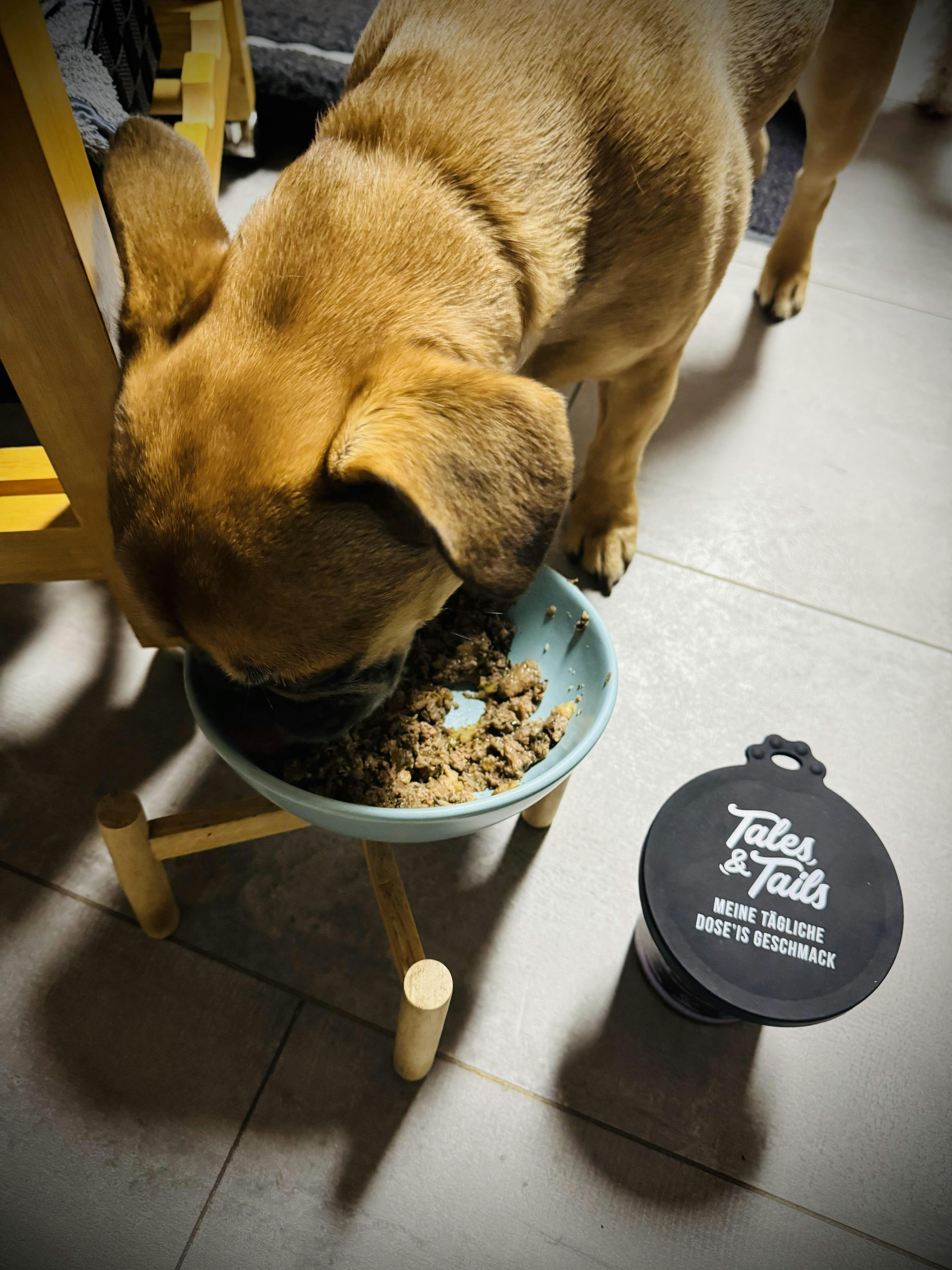 Alfie hatte über längere Zeit in regelmäßigen Abständen Analdrüsenentzündung. Dann habe ich das Futter auf Tales & Teiles umgestellt. Die Entzündung ist Vergangenheit. Und er liebt das Futter und kann es kaum erwarten.
