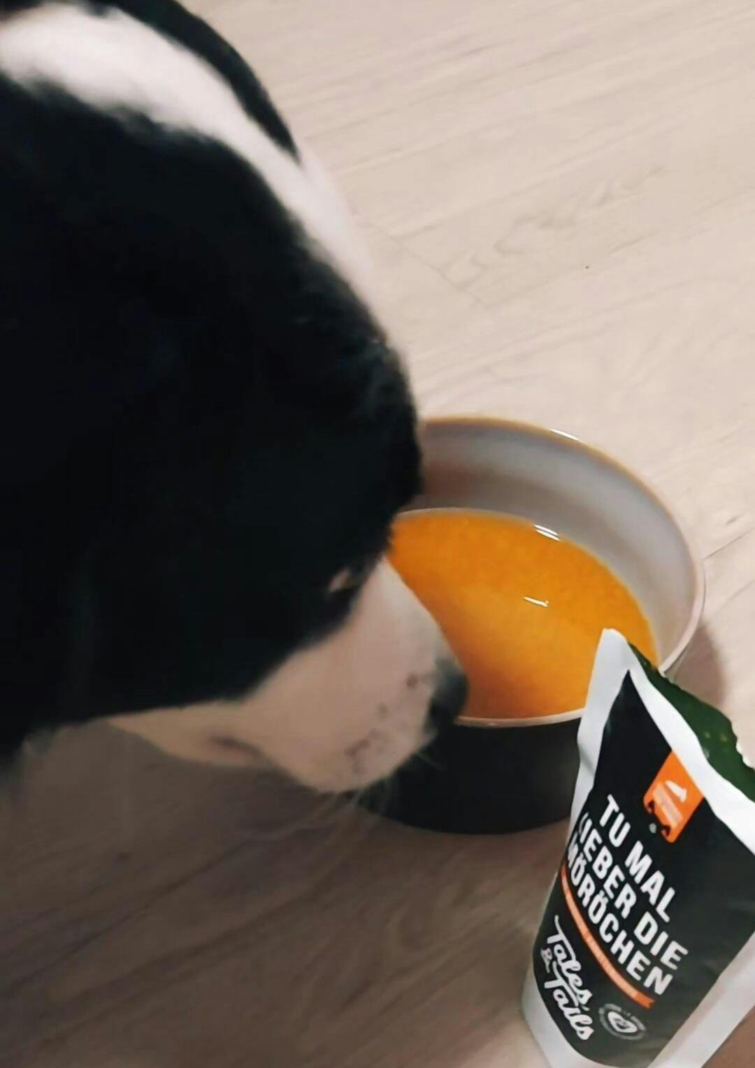 Grundsätzlich wird Tu mal lieber die Möröchen gut angenommen. Falls dein Hund den Geschmack aber nicht mag, kannst du die Morosuppe auch mit seinem Futter mischen. Auch unsere Fisch-Patés von Tales & Tails eignen sich prima, um mäkeligen Hunden die Morosuppe schmackhaft zu machen.